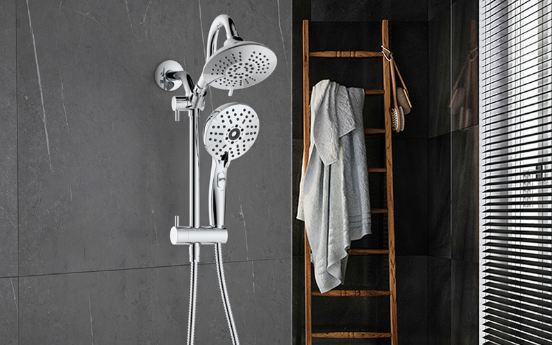 上出水彎管套裝;頂噴內(nèi)置球頭,可實現(xiàn)多角度旋轉(zhuǎn)調(diào)整;把手切換頂噴出水、花灑出水;轉(zhuǎn)動把手調(diào)節(jié)滑座高低;5功能出水花灑