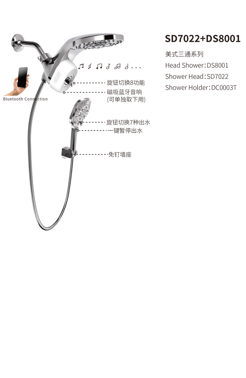SD7022-DS8001 藍(lán)牙音樂(lè)淋浴
